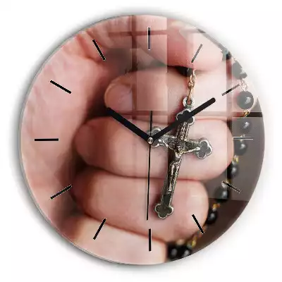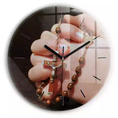 Zegar szklany okrągły Różaniec i krzyż