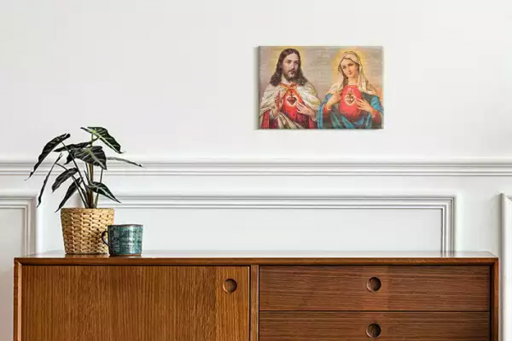Maryjny wizerunek nie ograniczał się jednak wyłącznie do dzieł sztuki o charakterze liturgicznym. Maryja stała się także inspiracją dla twórców dewocjonaliów. Medaliki, różańce czy też figurki z jej podobizną towarzyszą wiernym w codziennym życiu. Motywy maryjne są wykorzystywane w przedmiotach codziennego użytku – ceramice, haftach czy zdobieniach mebli jako wyraz osobistej pobożności. W ten sposób kult Matki Bożej przenika sferę religijną i łączy ją z artystyczną i domową. Dzięki temu Maryja stała się obecna w każdej przestrzeni życia. Obrazy z Maryją świetnie sprawdzą się w dekoracji domu, jako wyraz szacunku do niej.