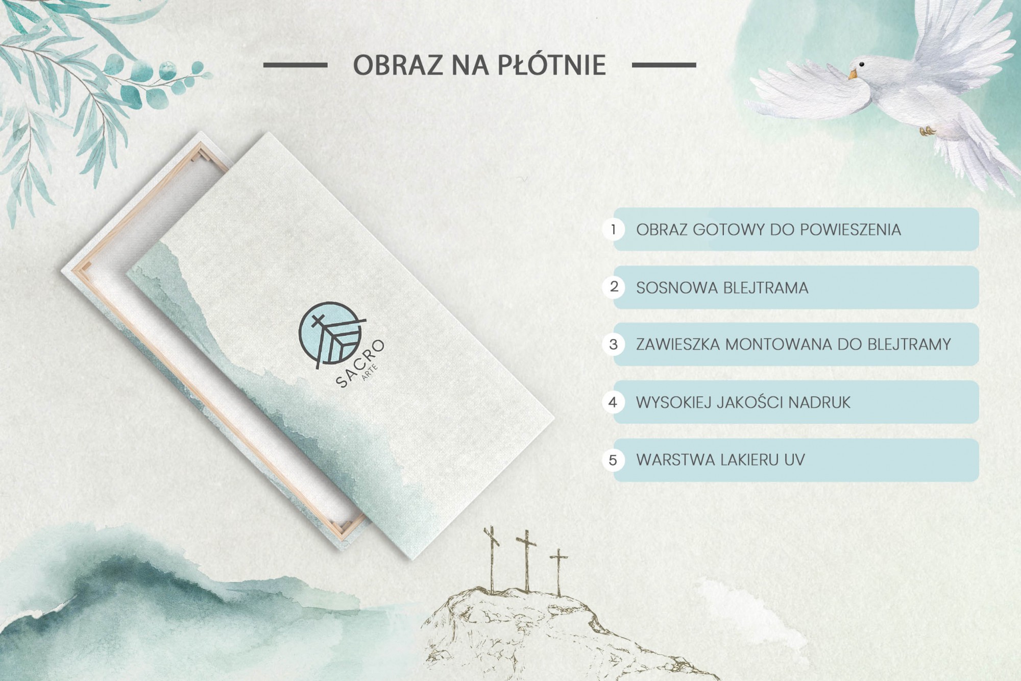 Foto obraz na płótnie Madonna z dzieciątkiem Jezus to połączenie estetyki i jakości. Druk na płótnie nie tylko zachowuje intensywność kolorów, ale także gwarantuje trwałość, co sprawia, że obraz przyciąga wzrok i stanowi doskonałe wykończenie wnętrza. Montaż jest łatwy, więc szybko udekorujesz swoją przestrzeń, nadając jej unikalnego charakteru, pełnego harmonii i refleksji.