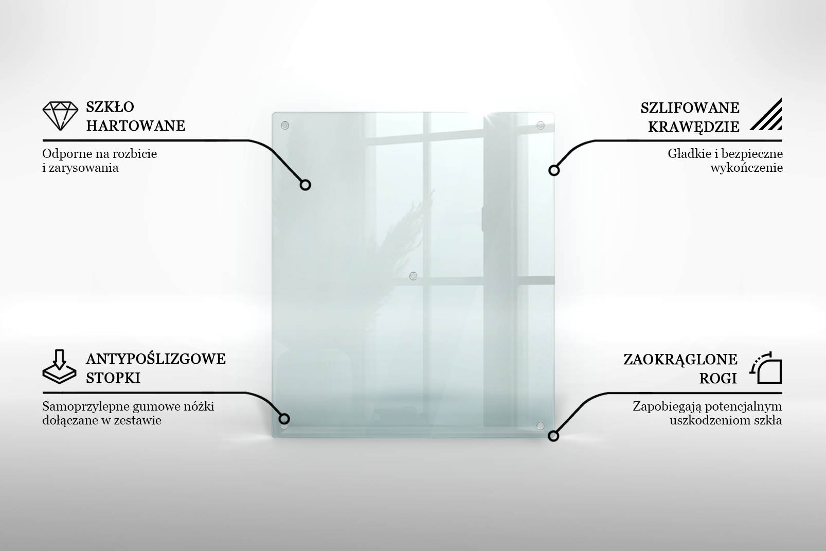 Obraz wykonany jest z wysokiej jakości szkła, które podkreśla głębię kolorów nadruku i zapewnia mu elegancki połysk.