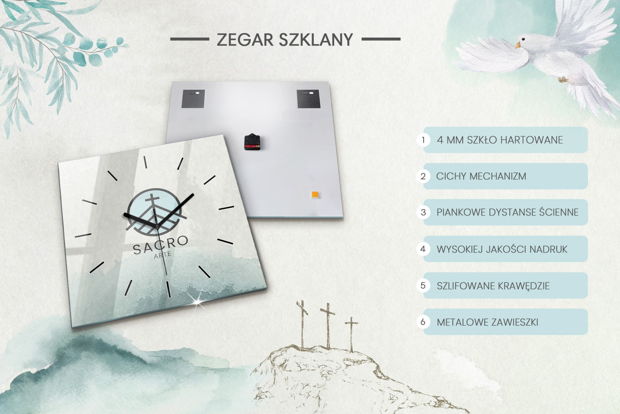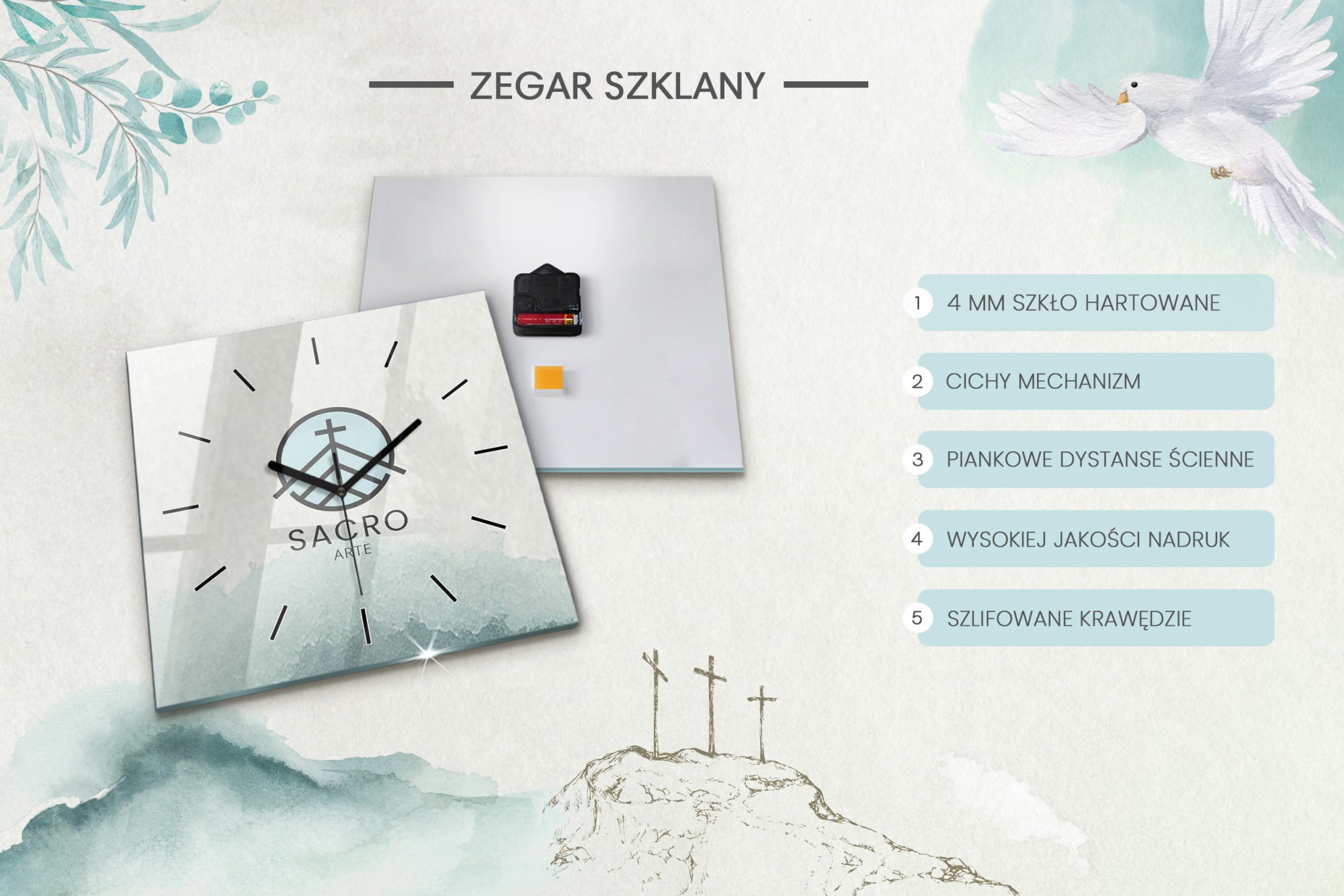 - Zegar szklany kwadratowy Grafika Gołąb Duch Święty